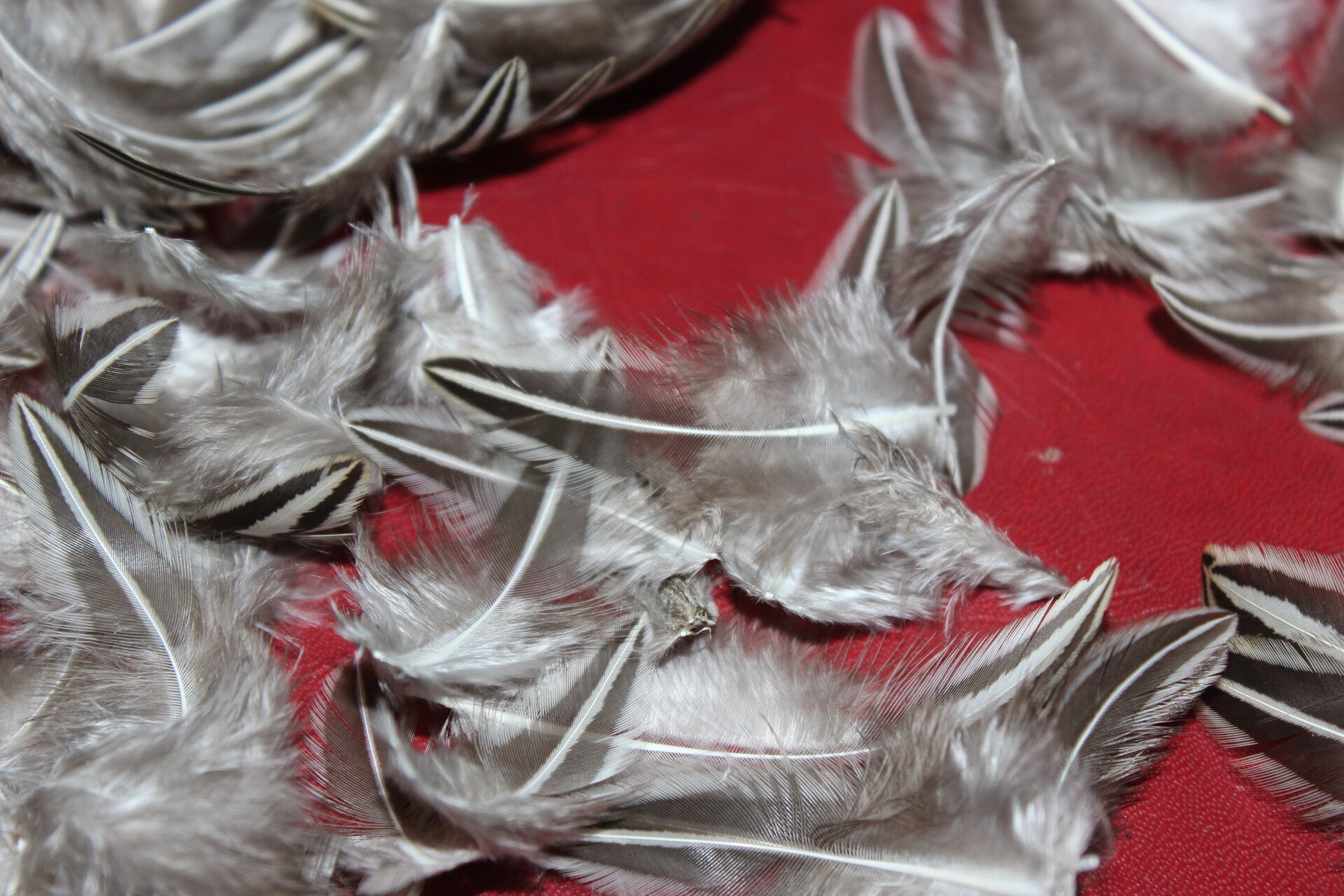 20 hackle feathers of varying sizes for hackling #12 and bigger.